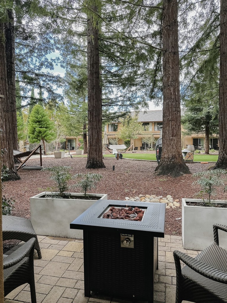 The Garden View King Guestroom was spacious and beautiful. You walk right outside and see the beautiful Redwood Trees and have your own personal fireplace. Great space for you and your spouse or friends/family to mingle.