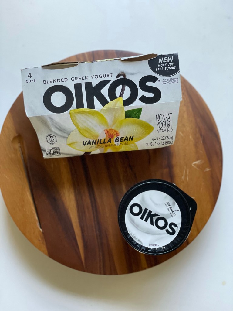 I cannot say “VANILLA” too loud in my house. My boys come running for the Oikos Vanilla bean yogurt. Truthfully, I need to hide them because they will eat the four back in one to two days. The vanilla makes me think of dessert and it is just perfect.