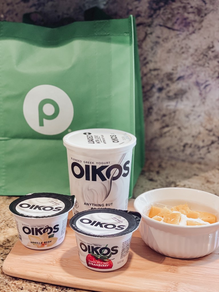 I just love to grab an Oikos Blended Nonfat Greek Yogurt whenever I am in my busy seasons, like now! I just grab it out of my fridge, pack it in my bag and that’s it! It is super easy and quick. To be honest, you don’t even need a spoon if you have a fork. IT IS THAT PERFECT. You can keep it simple or add whatever toppings you would like. Ultimately my favorite is adding fresh mangos to the Blended Greek Plain Yogurt. It’s seriously amazing and it really does help start my day or give me a much-needed pick me up during the day.